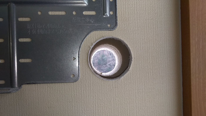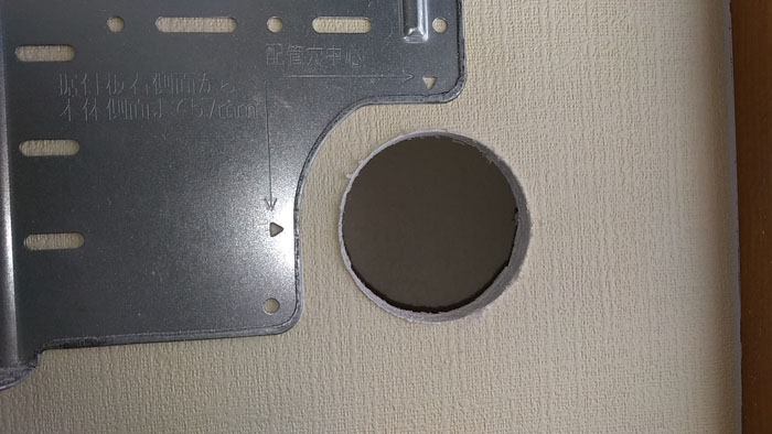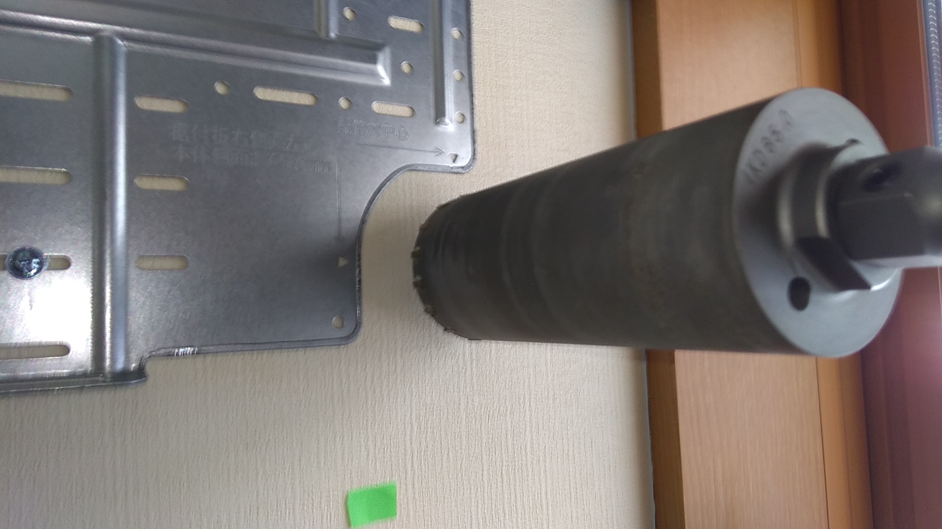 だんだんドリルビットを太くしていき、いよいよ65mmのALCコアドリルで穴を空けます。「間柱とか変なもの出てきませんように」と祈りながら。