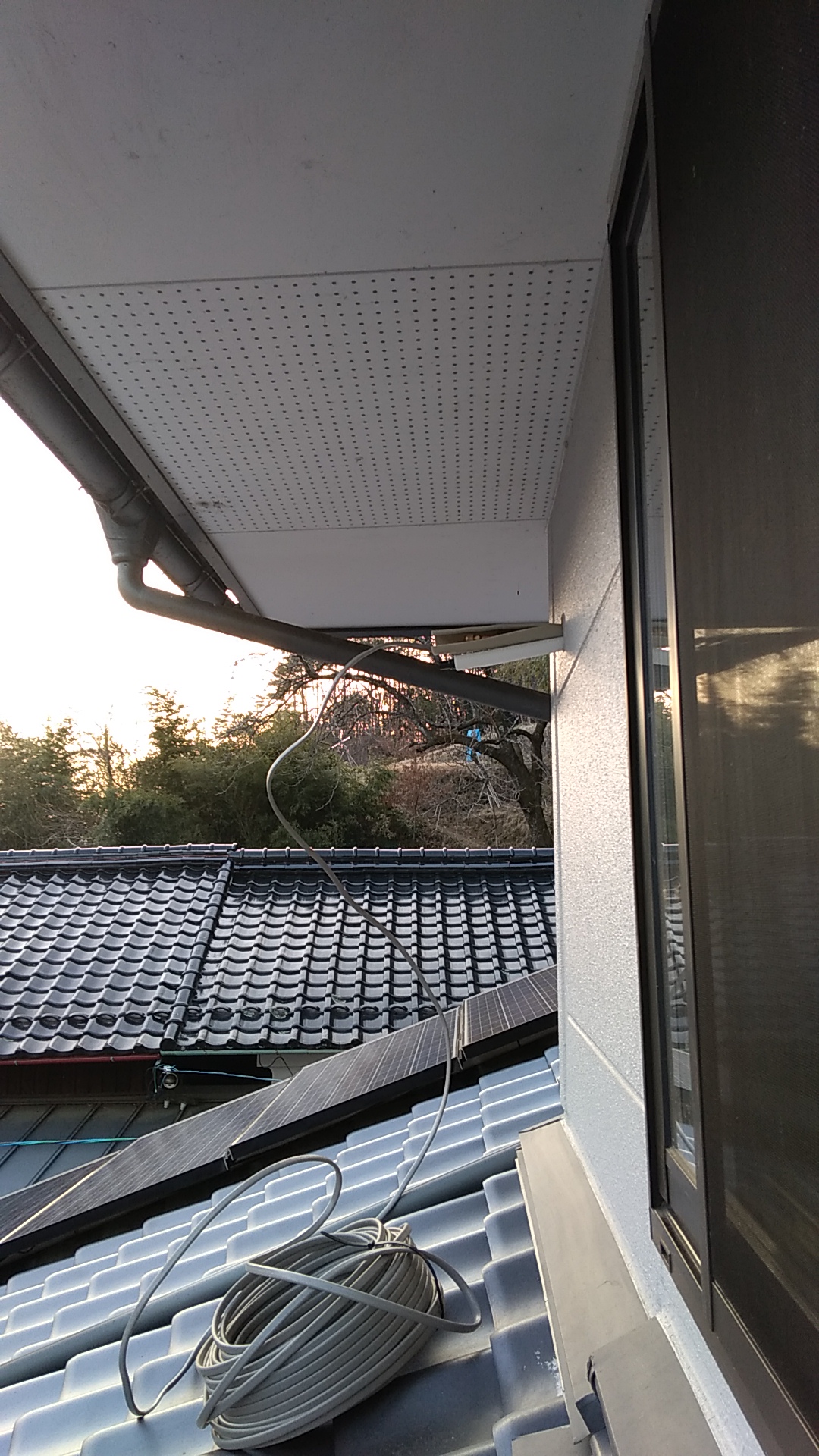 外側はというと、こんな状態。。明日は、室外機を設置します。