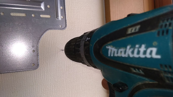 まずは、細いドリルビットで下穴を空けます。