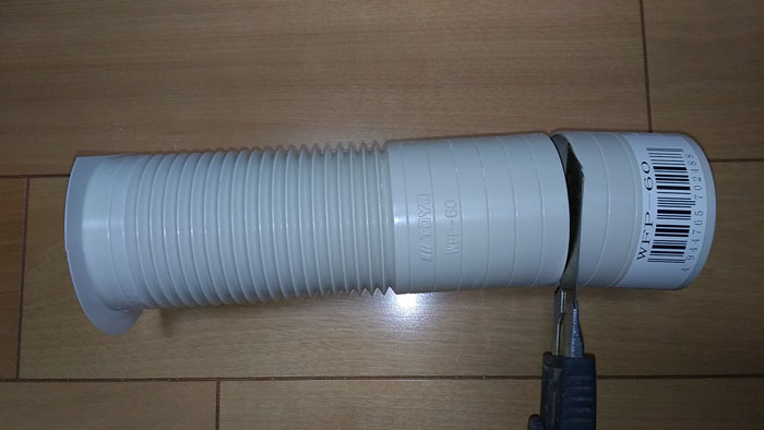 スリーブを入れる準備をします。一度穴にはめて長さを決めたらカッターでカットします。