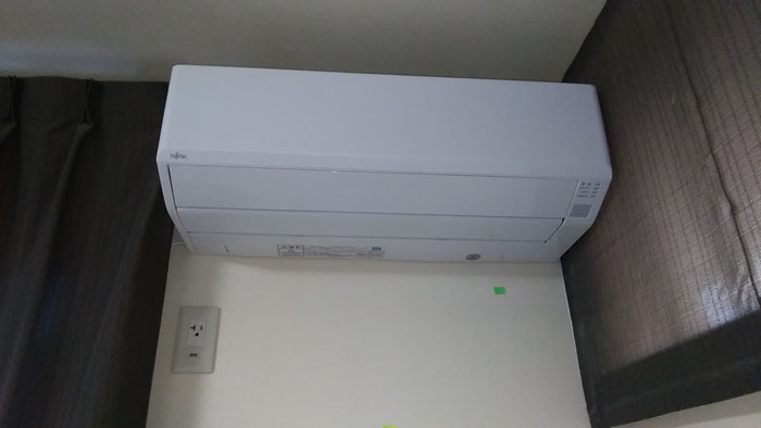 やっと室内機の設置完了!いやーほんとギリギリサイズ。