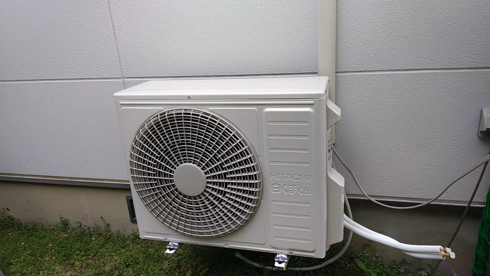 室外機を設置。40kg以上あり、男手2人で設置しました。