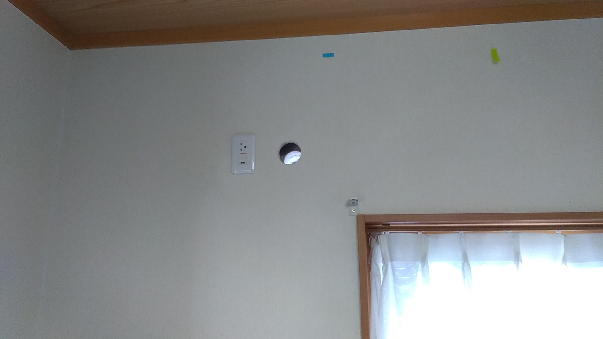 無事、穴開け完了。間柱や筋交いなど、変なものは何も出てきませんでした。