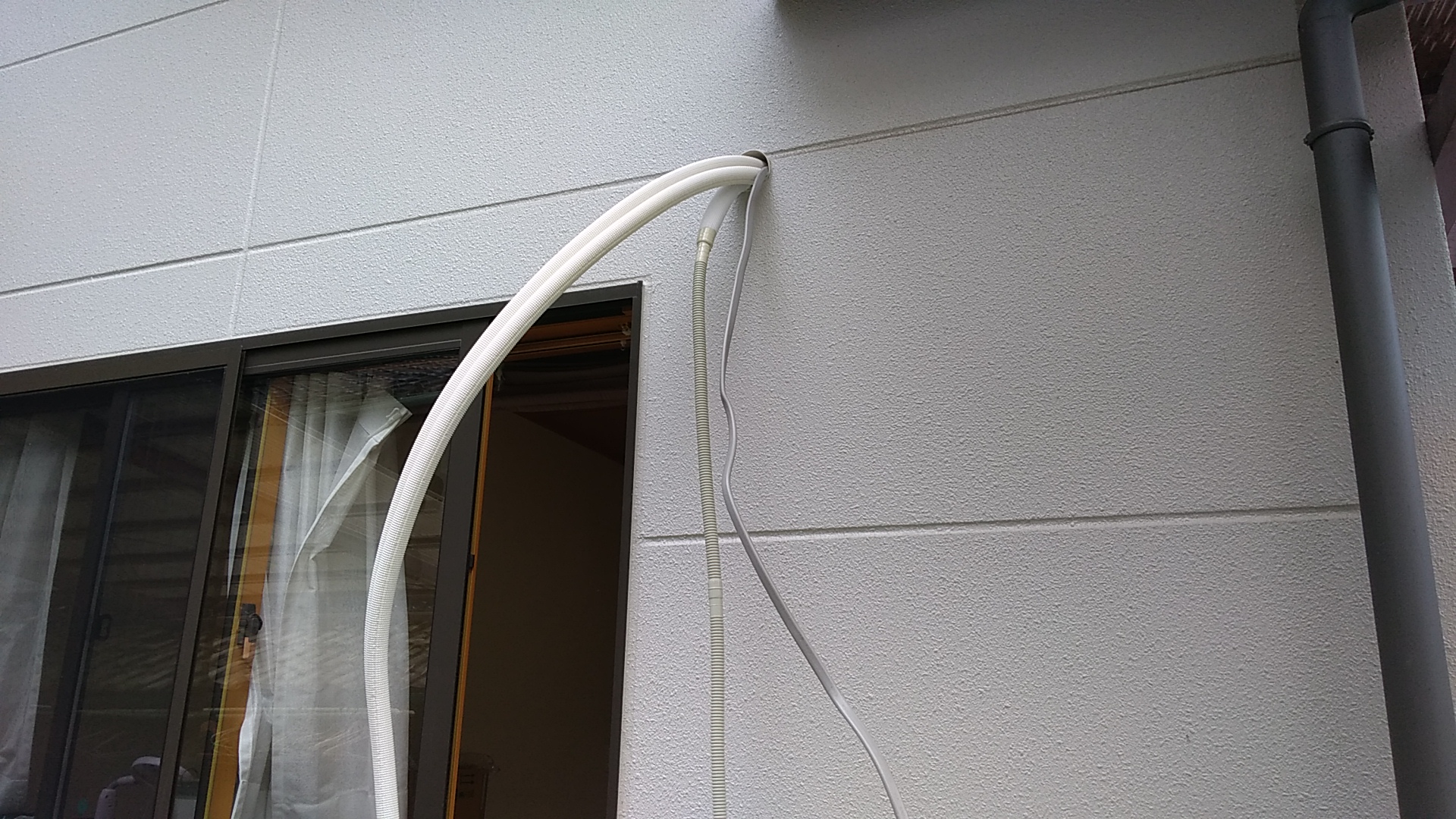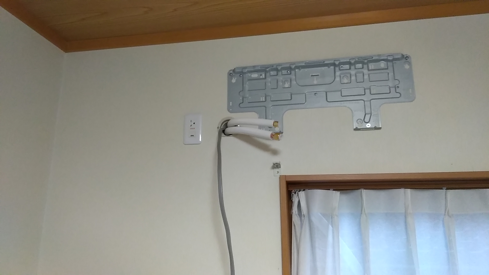 2019年06月17日、エアコン設置工事のDIYを開始しました。これまでは夏場でも1階はエアコン不要でしたが、温暖化の影響で、もはやエアコン無しではいられない状況になってしまいました。エアコンは白くまくん RAS-X56H2。200V仕様。左の隠蔽配管で設置します。