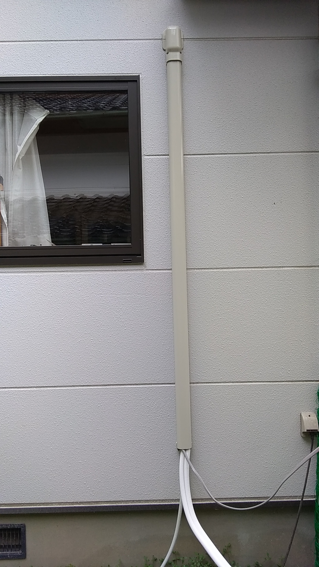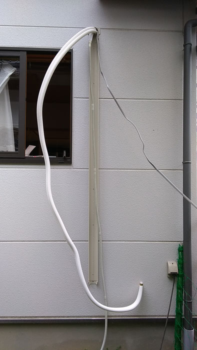 左の隠蔽配管なのでドレンホースの位置を変更します。