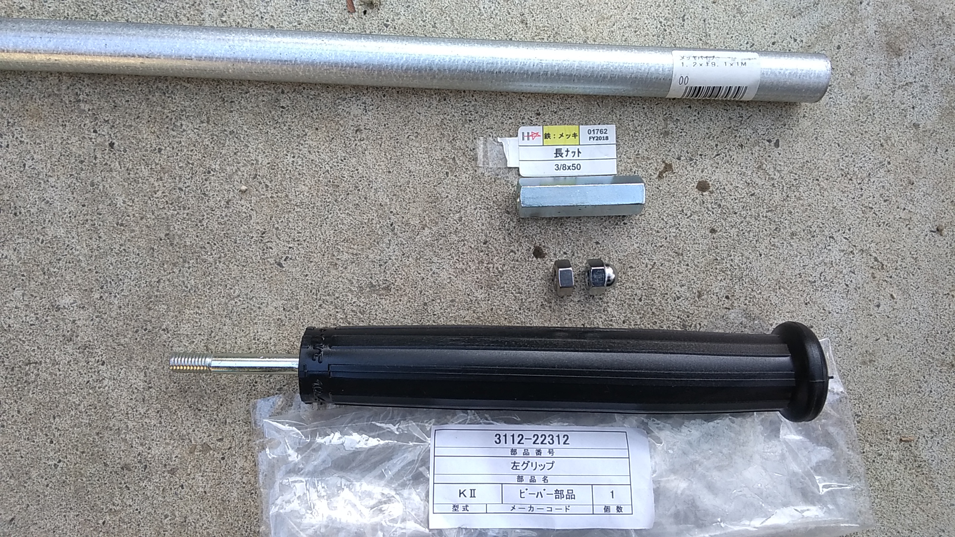 19mmのパイプは農業用のものが手に入るとして、グリップ部分をどうするのか…。アイデアがどうしても浮かびません。