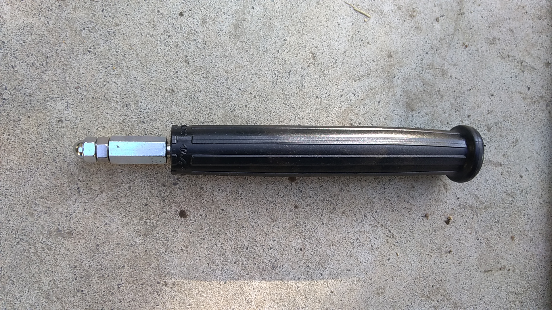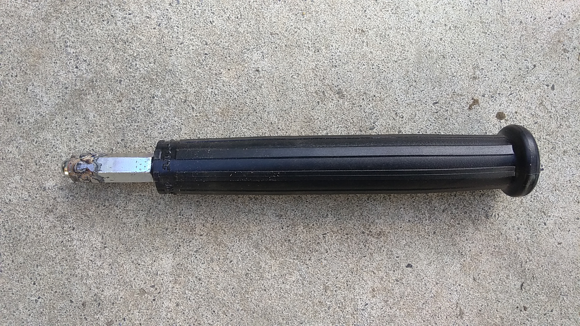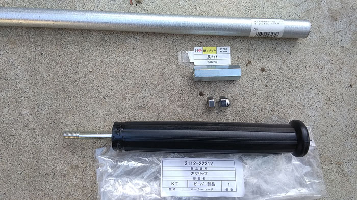 先端がM8ボルトになっている!これは非常にありがたい情報でした。感謝、感謝です。早速、近所の農機具屋さんに同じグリップを注文しました。送料がかかると言われましたが、案外安く税込2,970円。