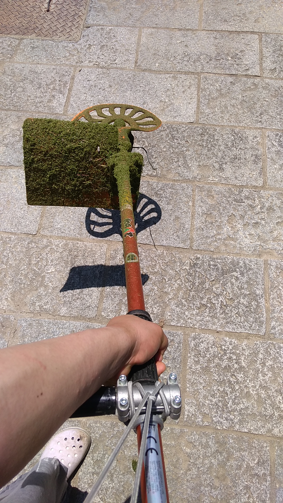 今年、ループハンドルからツーグリップハンドルへ改造したものの、竿の角度調整に力がいり、長時間の草刈りができませんでした。