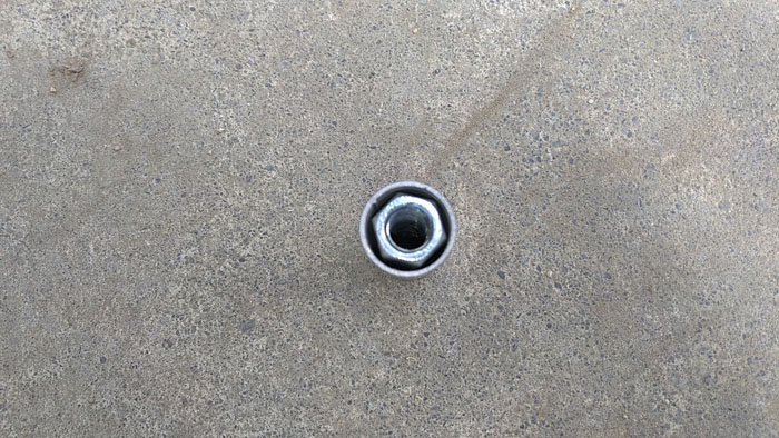 まず、M8袋ナット+M8ナット+長ナット3/8インチを溶接します。長ナットが少し長いので高速切断機で切断します。