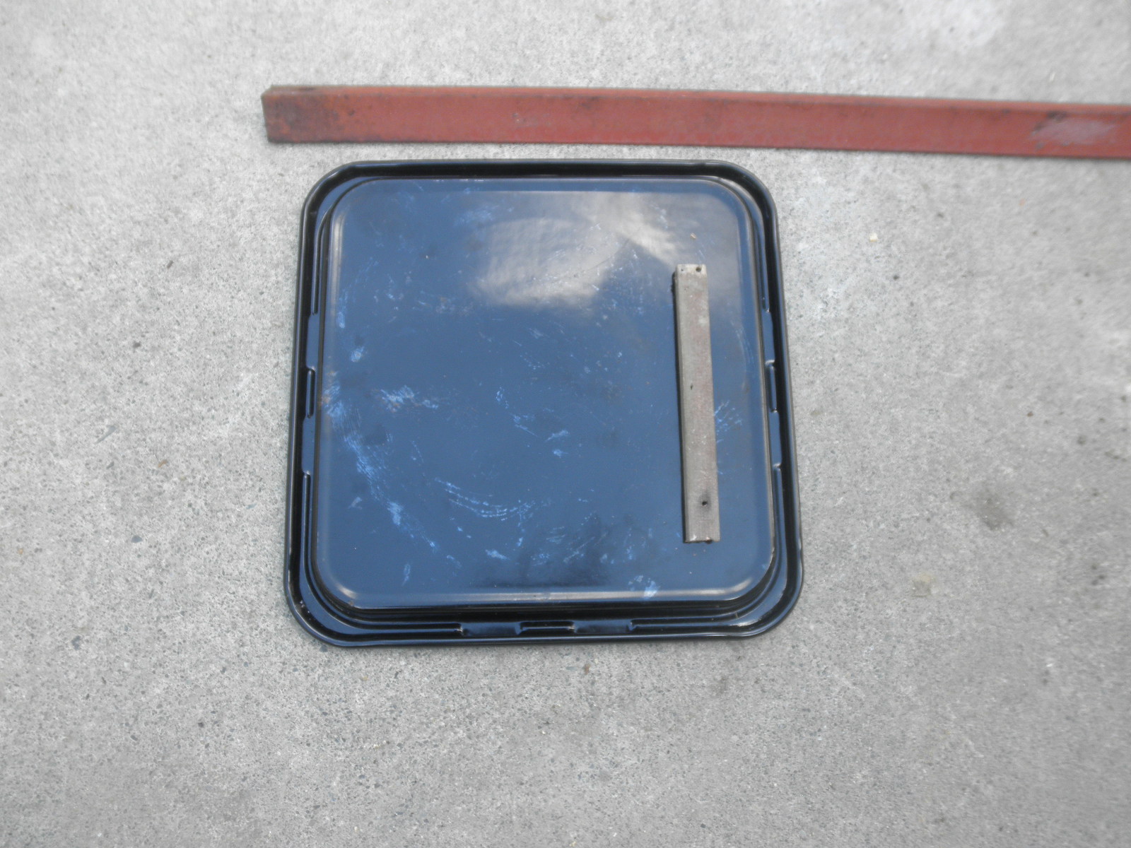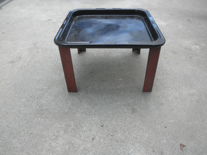 材料を用意しました。いらないオーブンのトレイと、そこら辺にあったアングルと、支柱の高さを決めるための木片です。