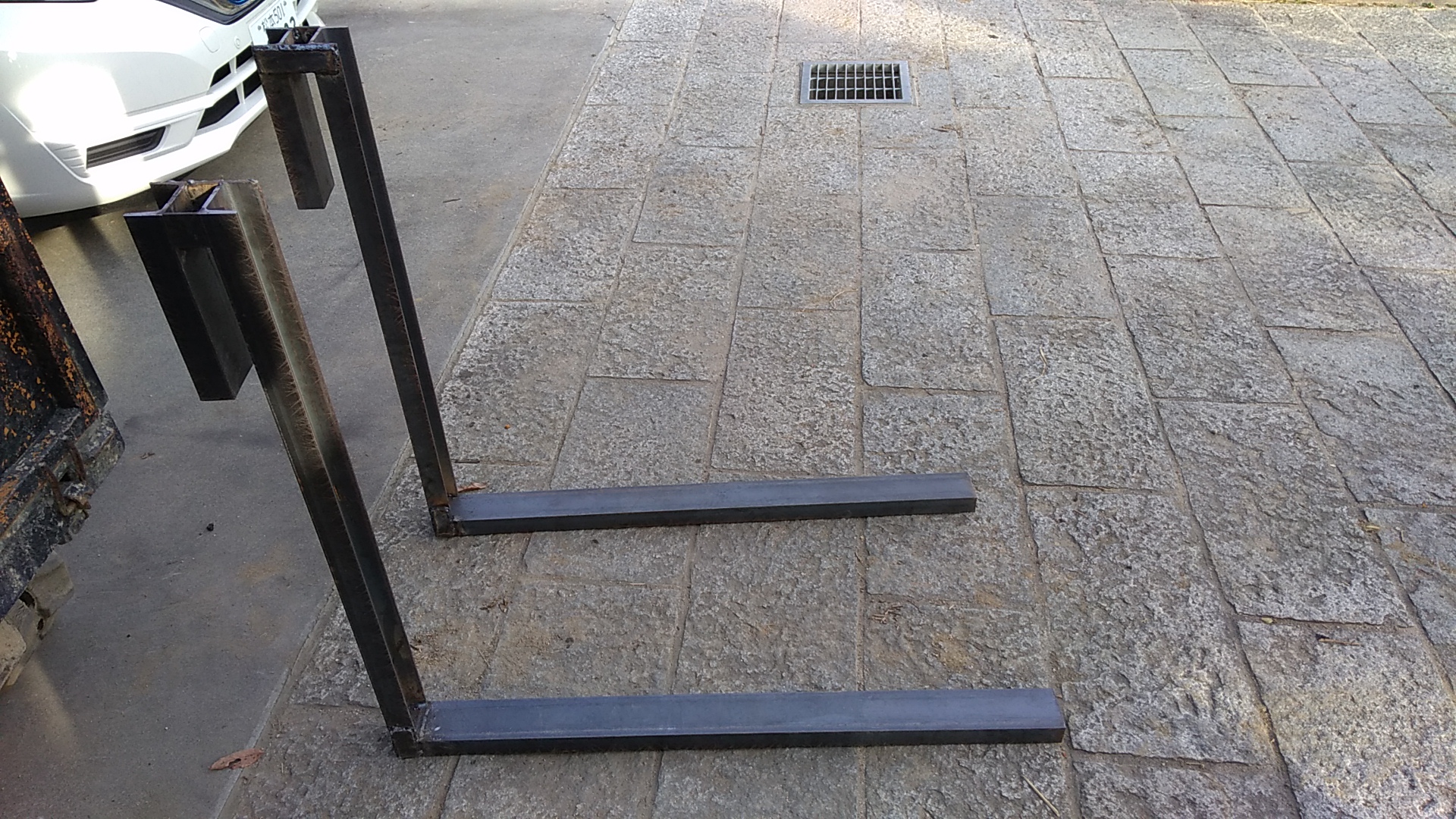 今回は製作途中の写真を撮る余裕がなく、完成写真のみです。軽トラの荷台にパレットを乗せるにはリフトの高さがギリギリで寸法出すのに苦労しました。鉄骨同士はエンジンウェルダーで溶接しました。