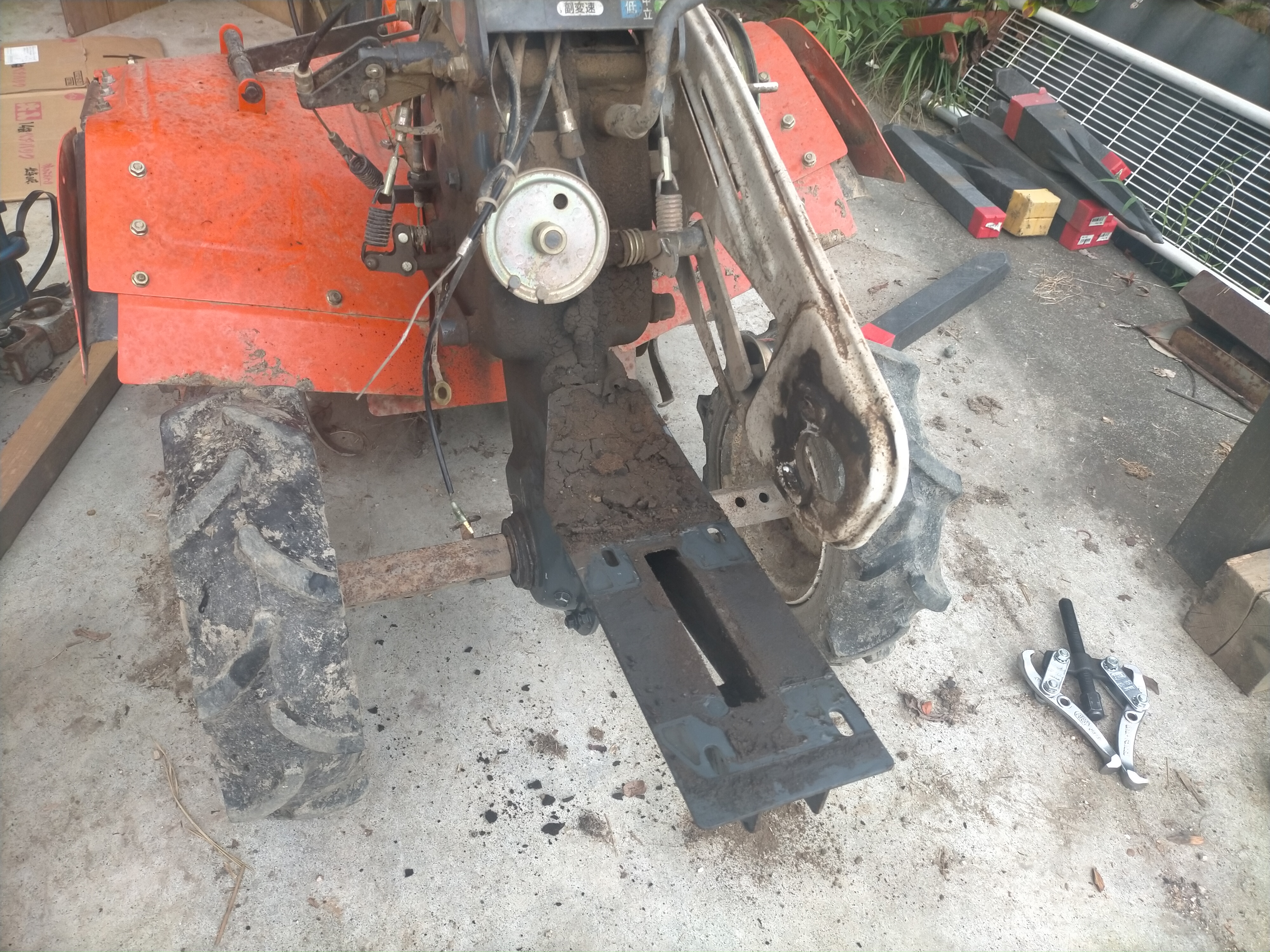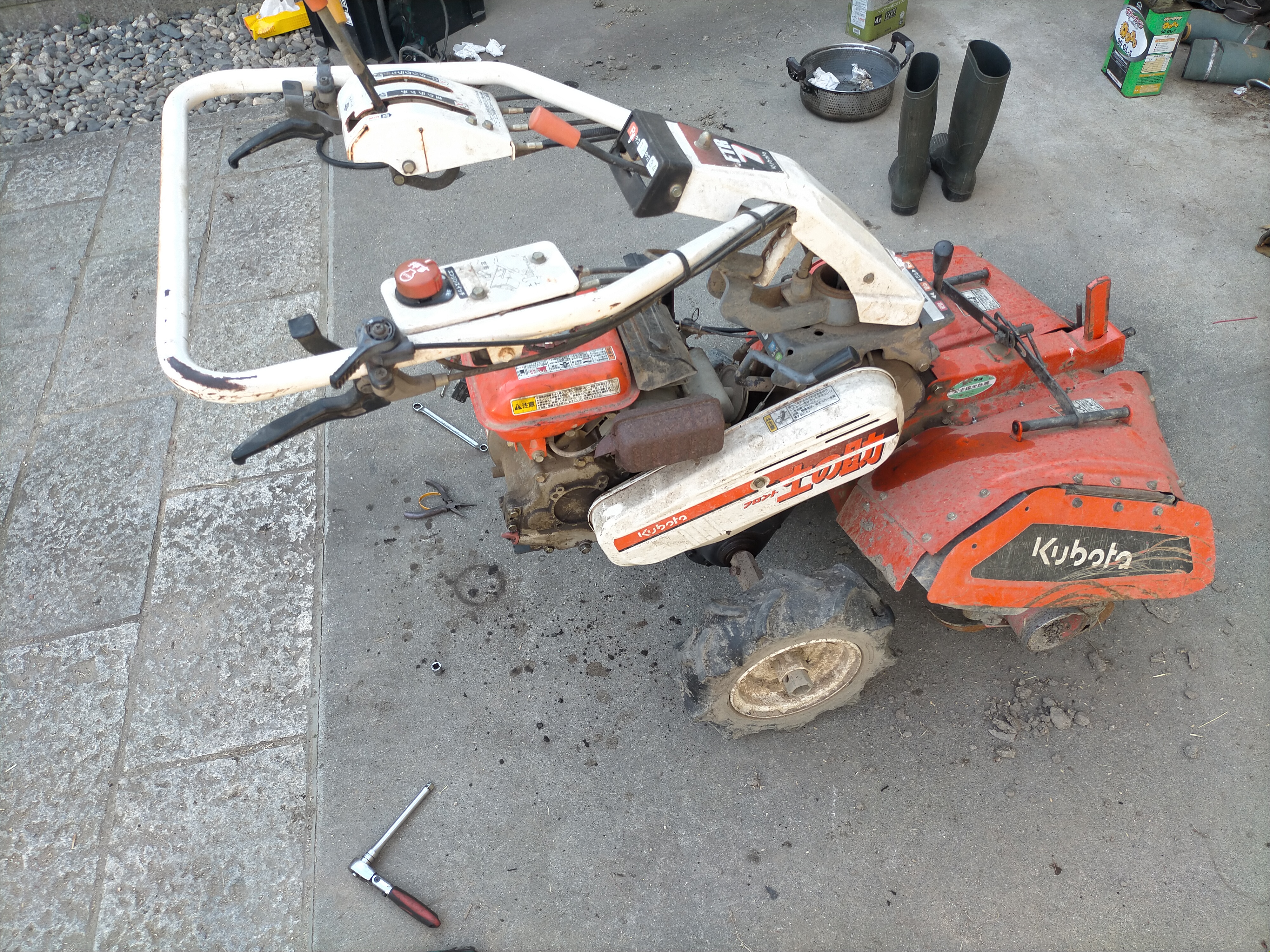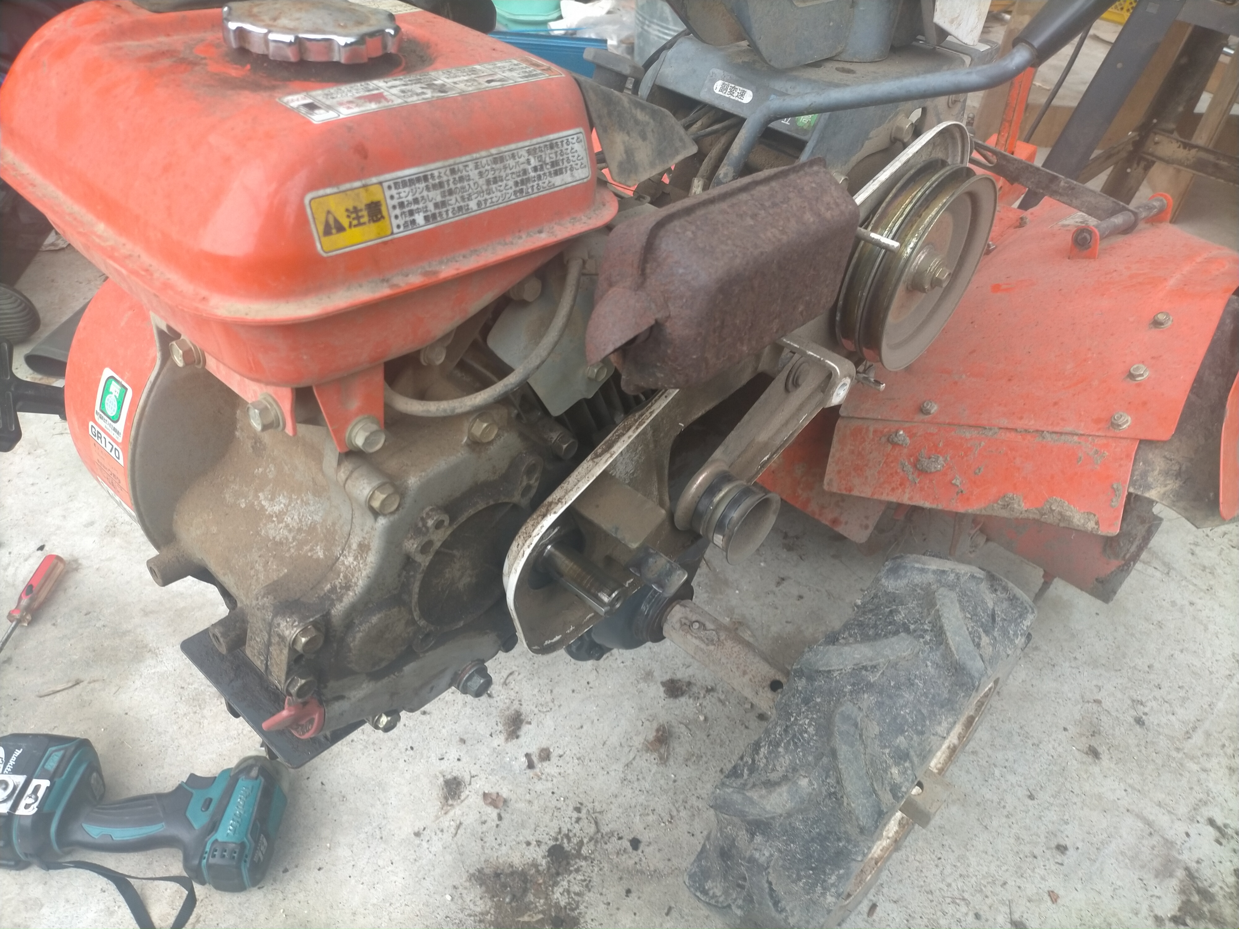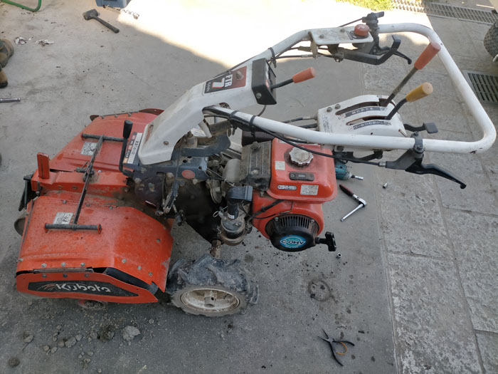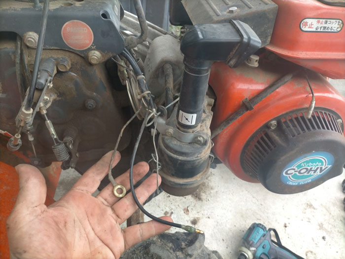 2024年07月29日、うちの耕運機、クボタ VTR-7は叔父さんから譲り受けましたが、ギアオイル(ミッションオイル)漏れがあり、継ぎ足してもみるみると漏れて減っていきます。何よりもまず気持ち悪い。なんとかしようと思います。まず、これはオイルシールからの漏れではありません。オイルシールよりもかなり上から漏れてきます。一番困るのはギアケースに塗ってある液状ガスケットからの漏れです。これだとギアケースを割る必要があり、すごく面倒くさそうです。