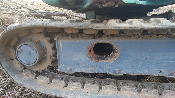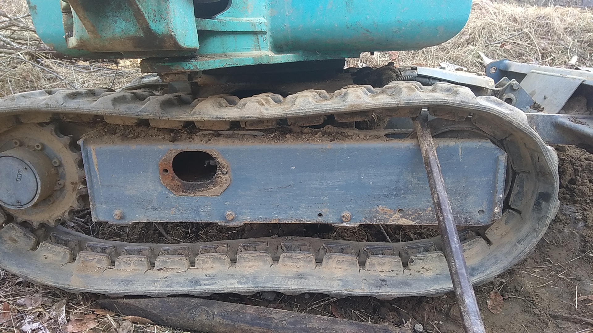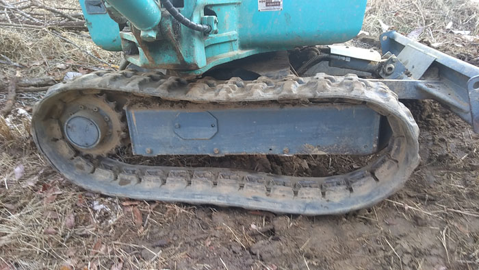 2018年02月27日、薪の一時置き場へアクセスするための道をユンボで作っていたら、ゴムクローラーが簡単に外れてしまいました。