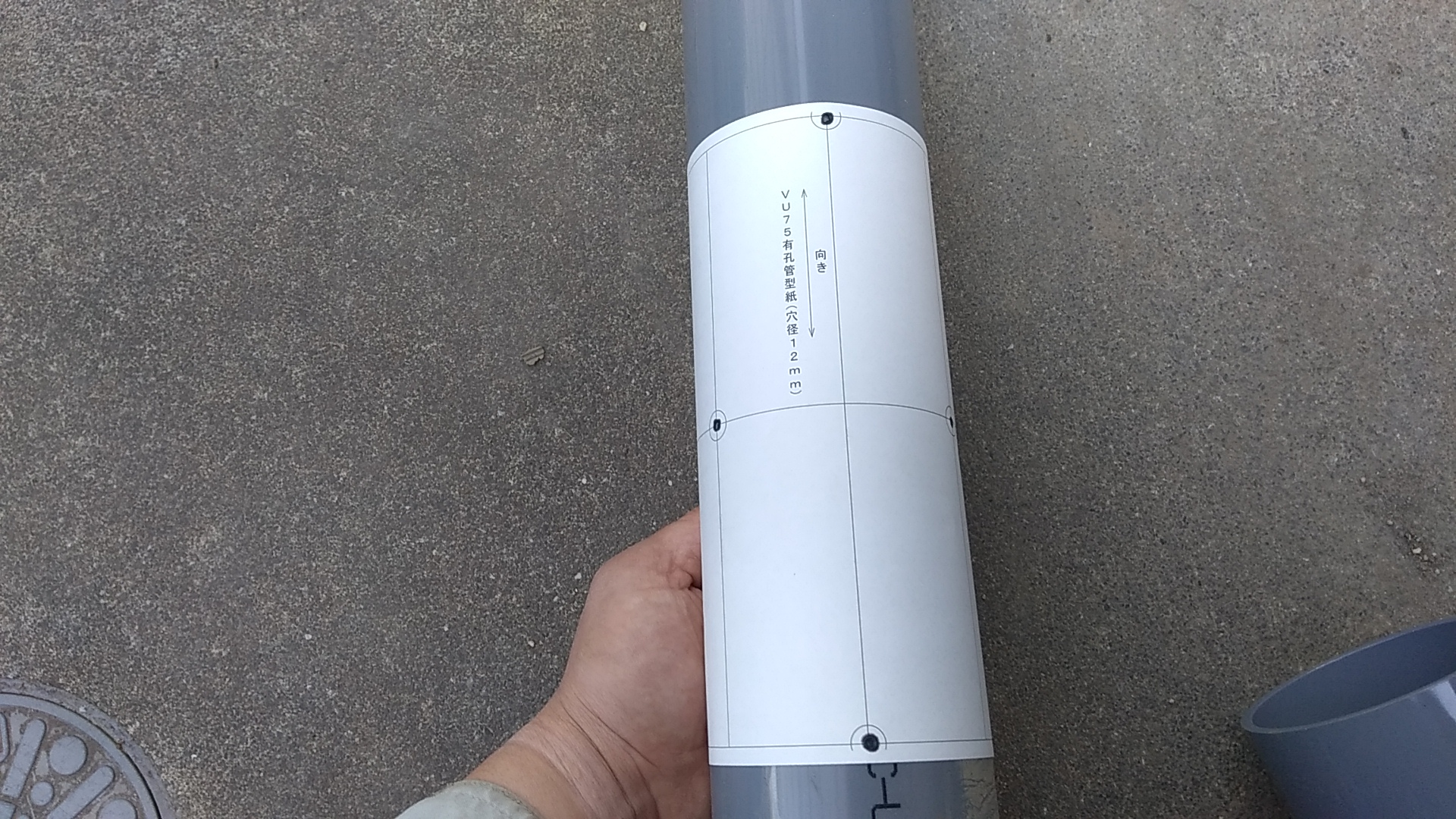 暗渠排水工事をする時、普通のVU管から有孔管を作るための型紙です。
