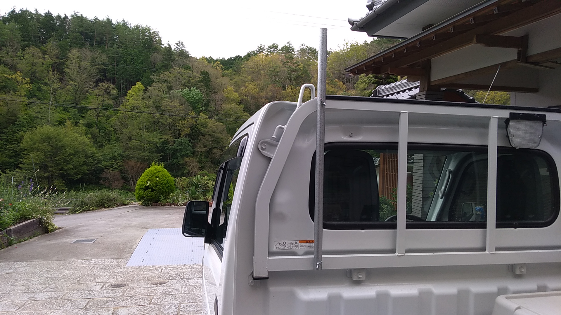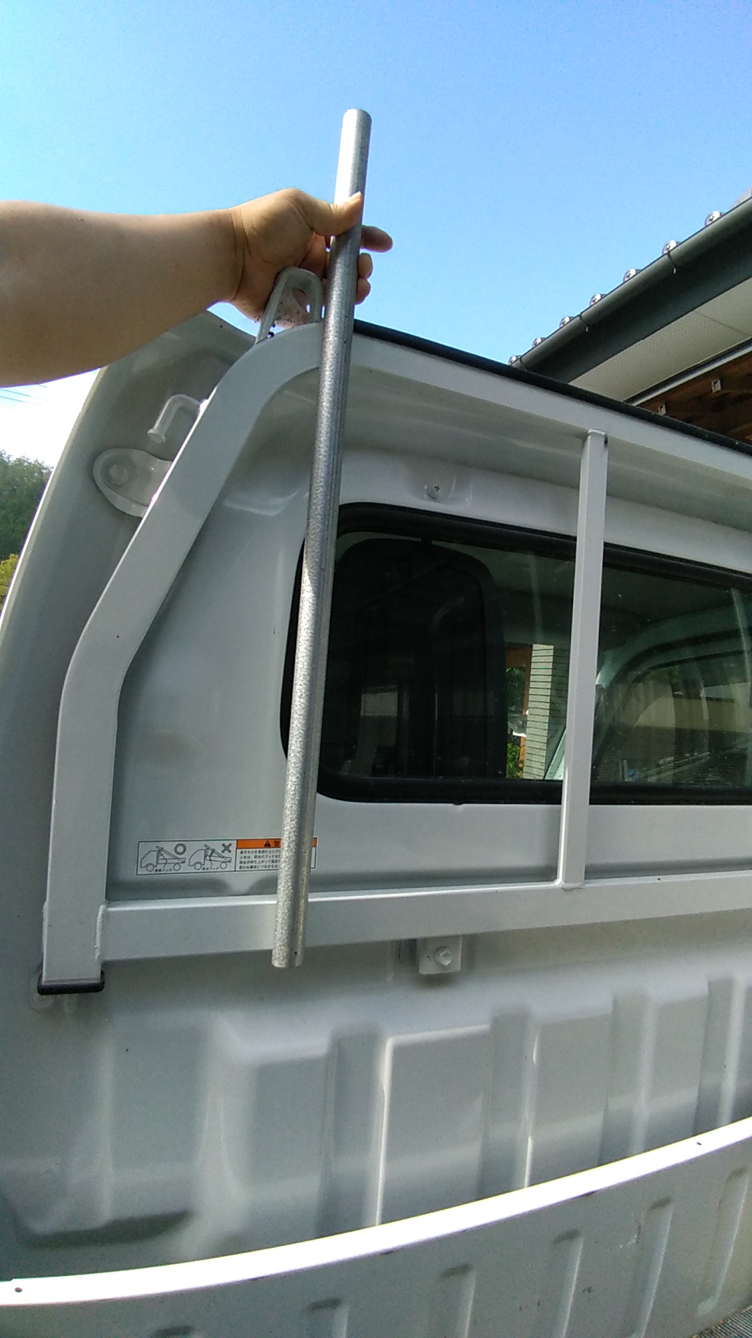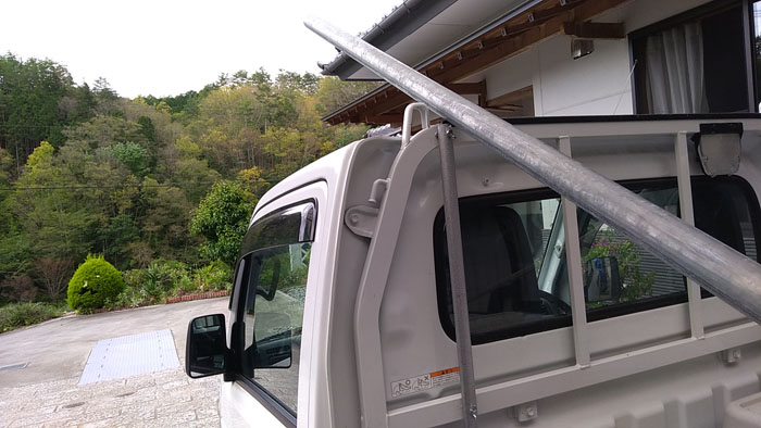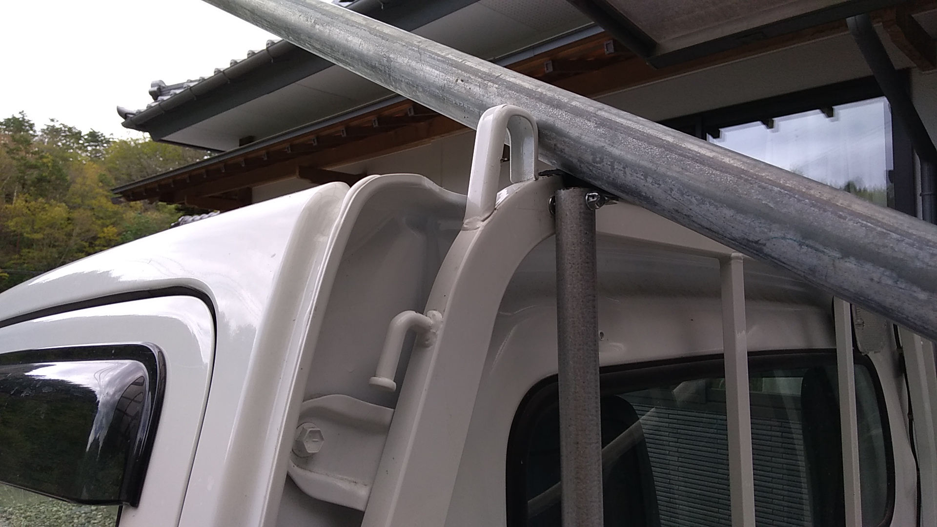 2020年07月02日、軽トラの鳥居に長めのツノを自作することにしました。前に軽トラで塩ビパイプのVU75の4mを運んでいたら、しっかり縛ったはずの塩ビパイプが風であおられ、鳥居から外れ落下しました。パイプは折れてしまうし、もし歩行者がいたりしたら大惨事でした。もう二度とあんな思いはしたくない。ということで、うまいこと工夫して長めのツノを作りたいのですが、元々あるツノ(角)は猫の耳とも呼ばれるぐらい短いものでして、塩ビパイプを運ぶのには向きません。自重がある単管パイプとかは大丈夫ですが。