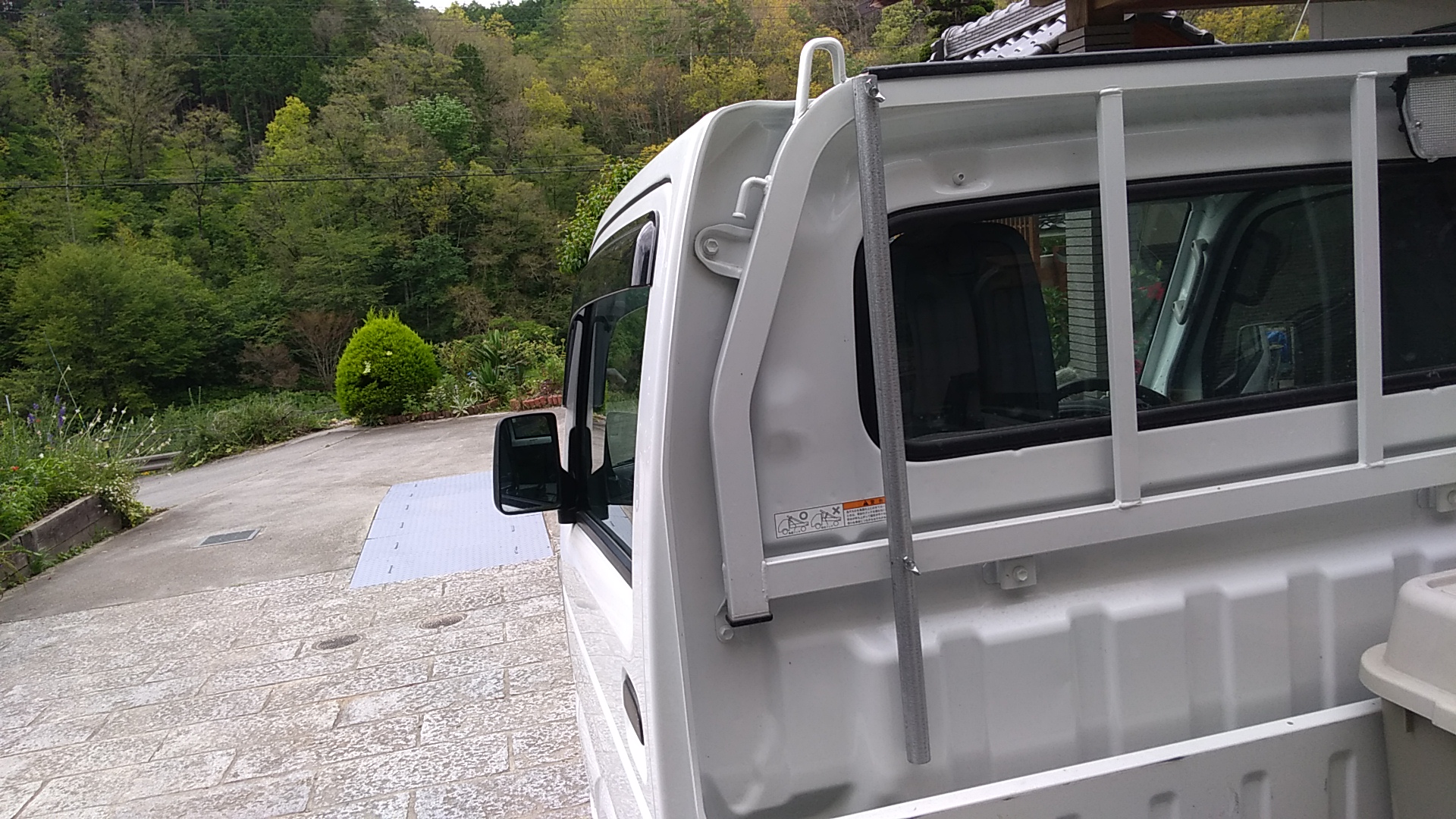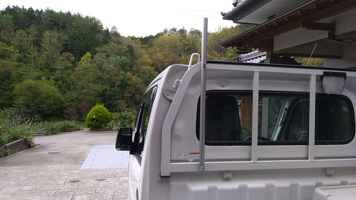 で、いろいろと情報収集してみた結果。こんな感じで良くね?ってことになりました。蝶ボルトで取り付けてあれば、軽トラの全高+4cmを超えてもどうやら車検を通るようです。もっとも今回は収納モードも考えてあります。