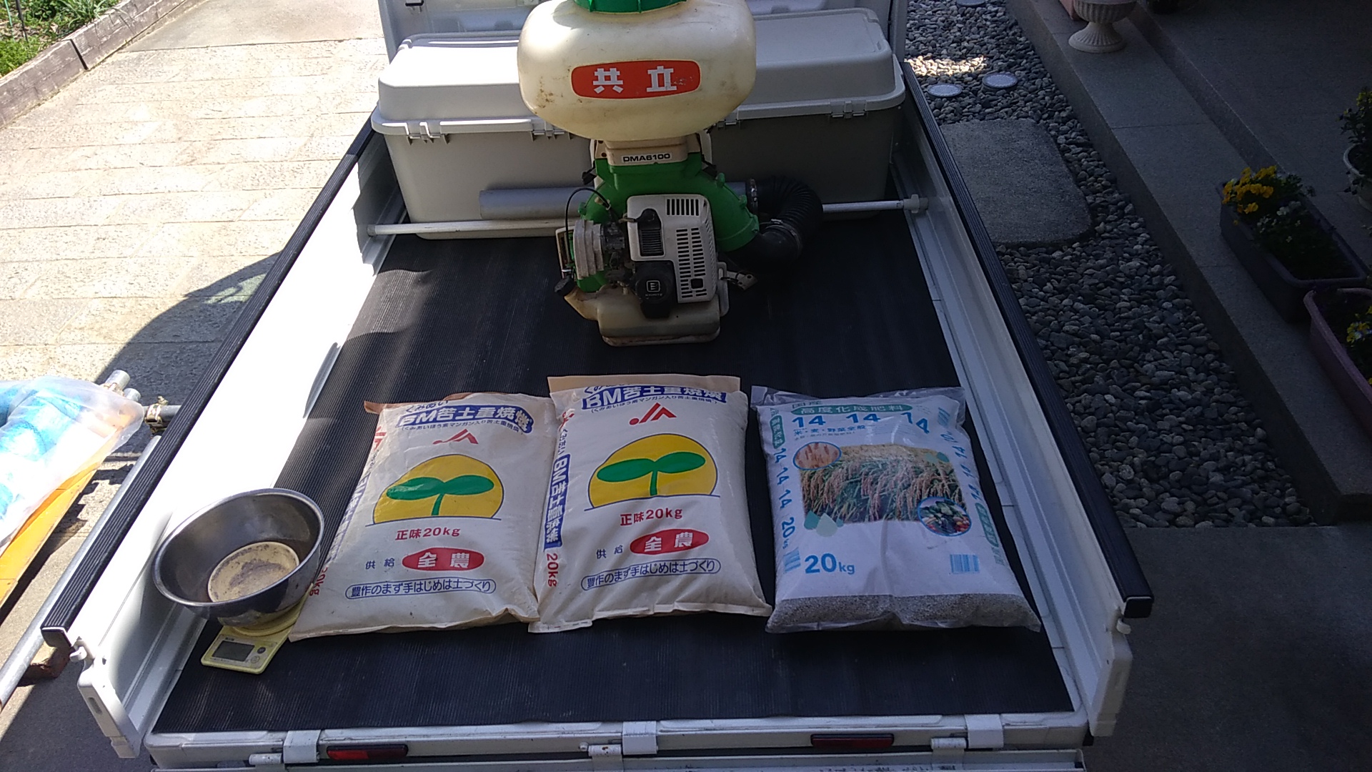 2018年04月20日、堆肥だけでは補いきれない肥料を散布機で散布しました。BM苦土重焼燐は、く溶性リン酸が主ですが、苦土(マグネシウム)の他、微量要素であるマンガン、ホウ素を含みます。