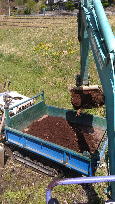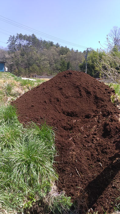 2018年04月16日、飯田市の伊藤牧場さんから牛糞堆肥が2トン車で届きました。ここの堆肥はサラサラでまきやすいので気に入っています。