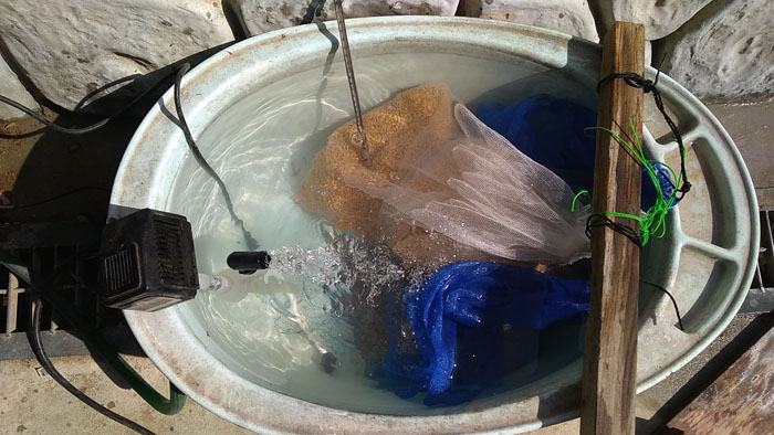 昔、熱帯魚を飼っていた時に使っていたサーモスタット付きヒーターと、循環ポンプを使います。循環ポンプで水槽全体の温度を一定にし、酸素供給を行います。