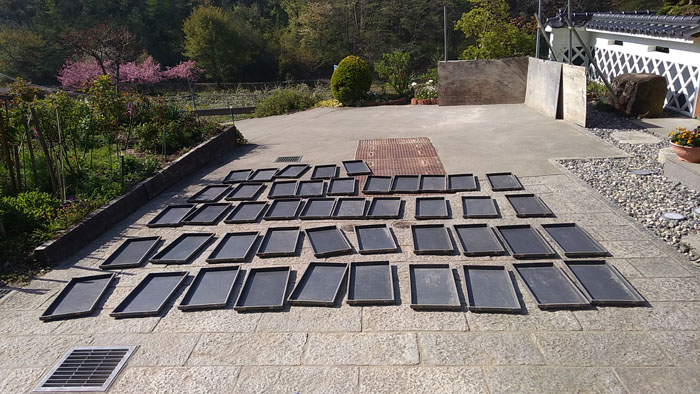 まずは苗箱を並べます。