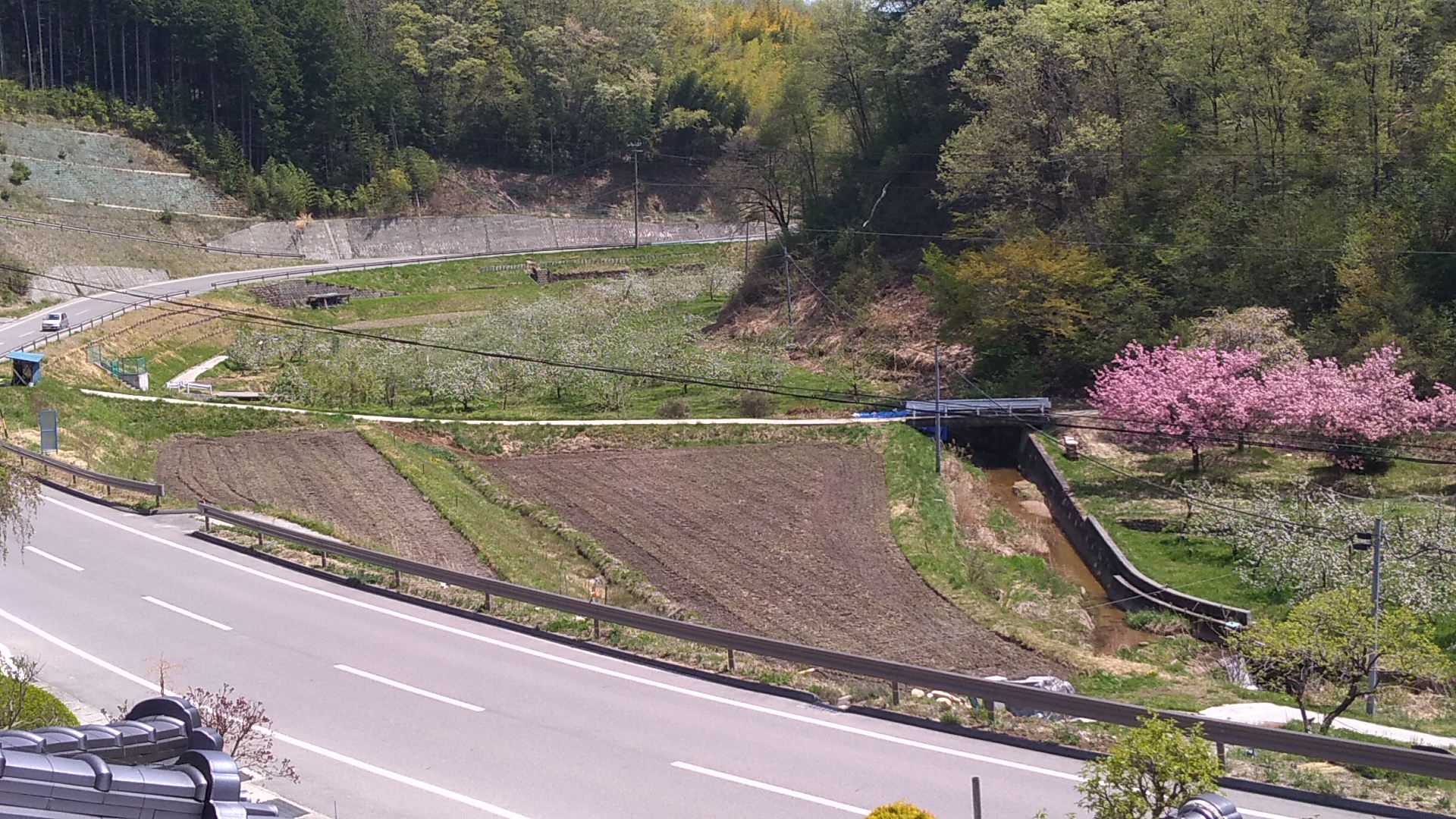 リンゴと八重桜の花が咲いていますね。私は春の草花の花粉症なので楽しむ気分には到底なれませんが。