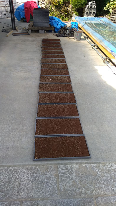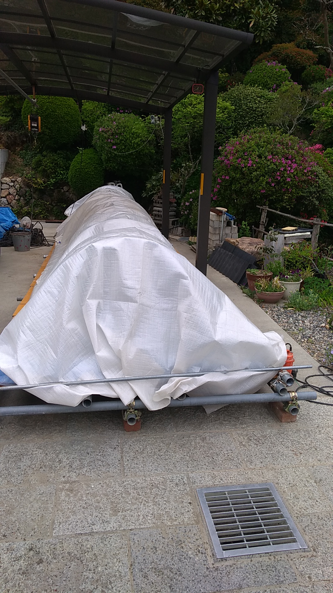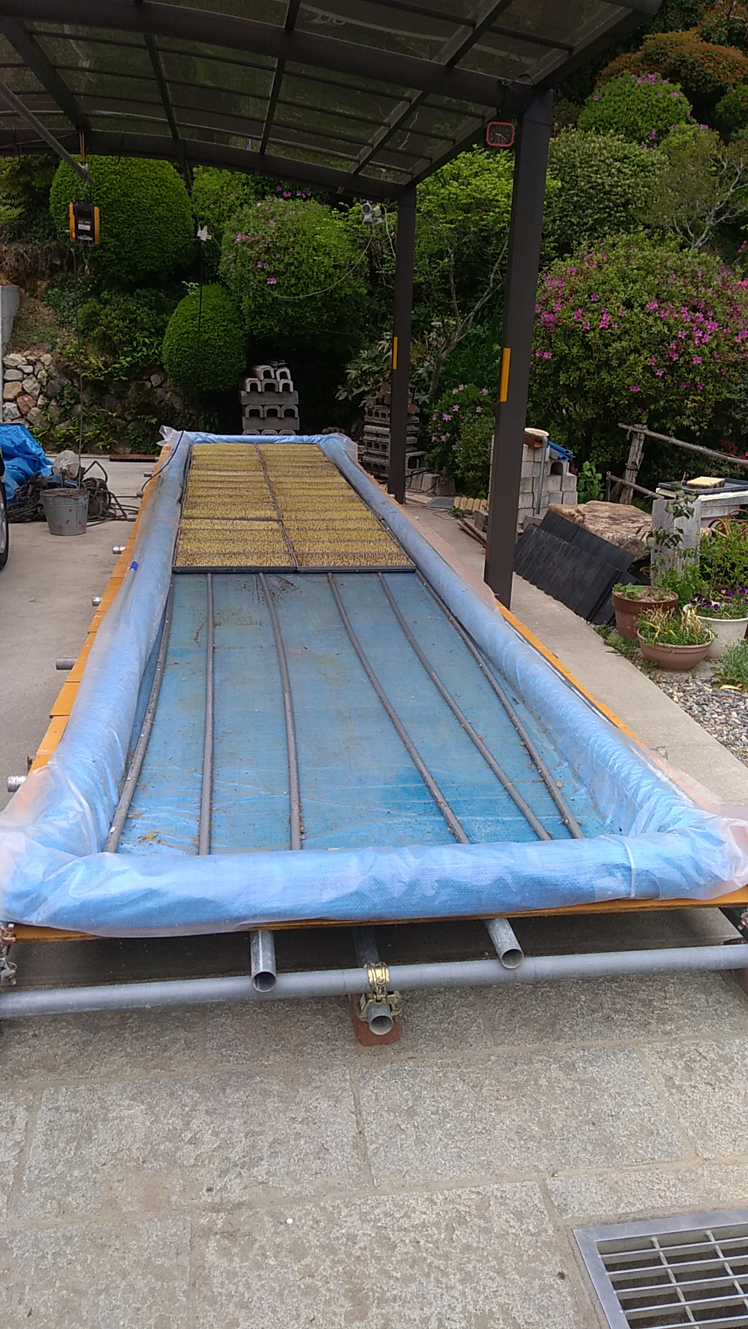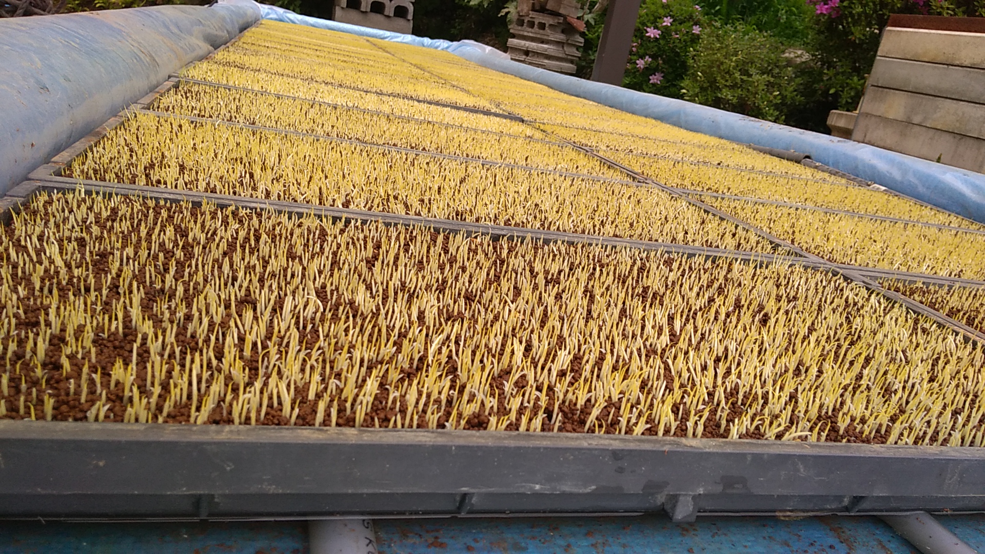 タイミング的には、明日から天気が雨模様なのでちょうど良いです。シートで遮光するとはいえ、緑化終了までは強烈な日光は苗に良くないのです。