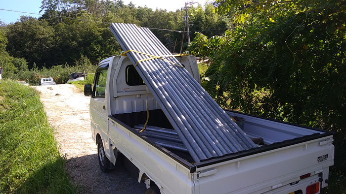 そして稲束を運ぶ運搬車を稲刈り仕様に改造します。直径19.1mm、長さ1.8mの直管パイプを直交クランプという金具で繋げます。これのおかげで稲束を大量に積むことが出来ます。