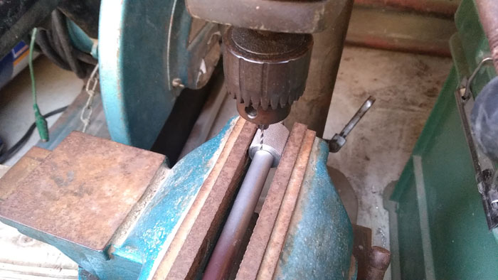 2018年12月09日、モノタロウより10%OFFのメールがあったので丸リベットを注文、昨日届きました。早速続きをやります。まずは緊張の穴開け。ボール盤を使って慎重に…。