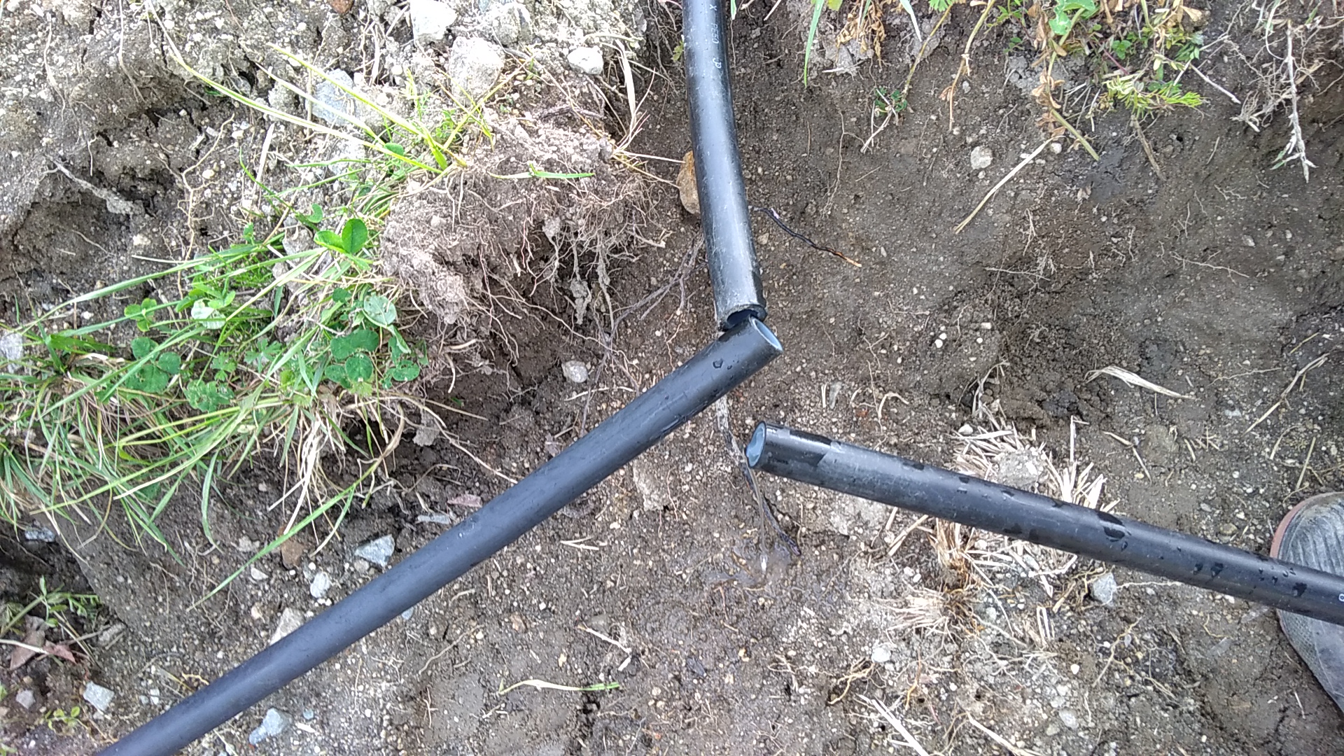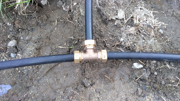 3カ所、同じ作業を繰り返してポリエチレンパイプの分岐完了です。
