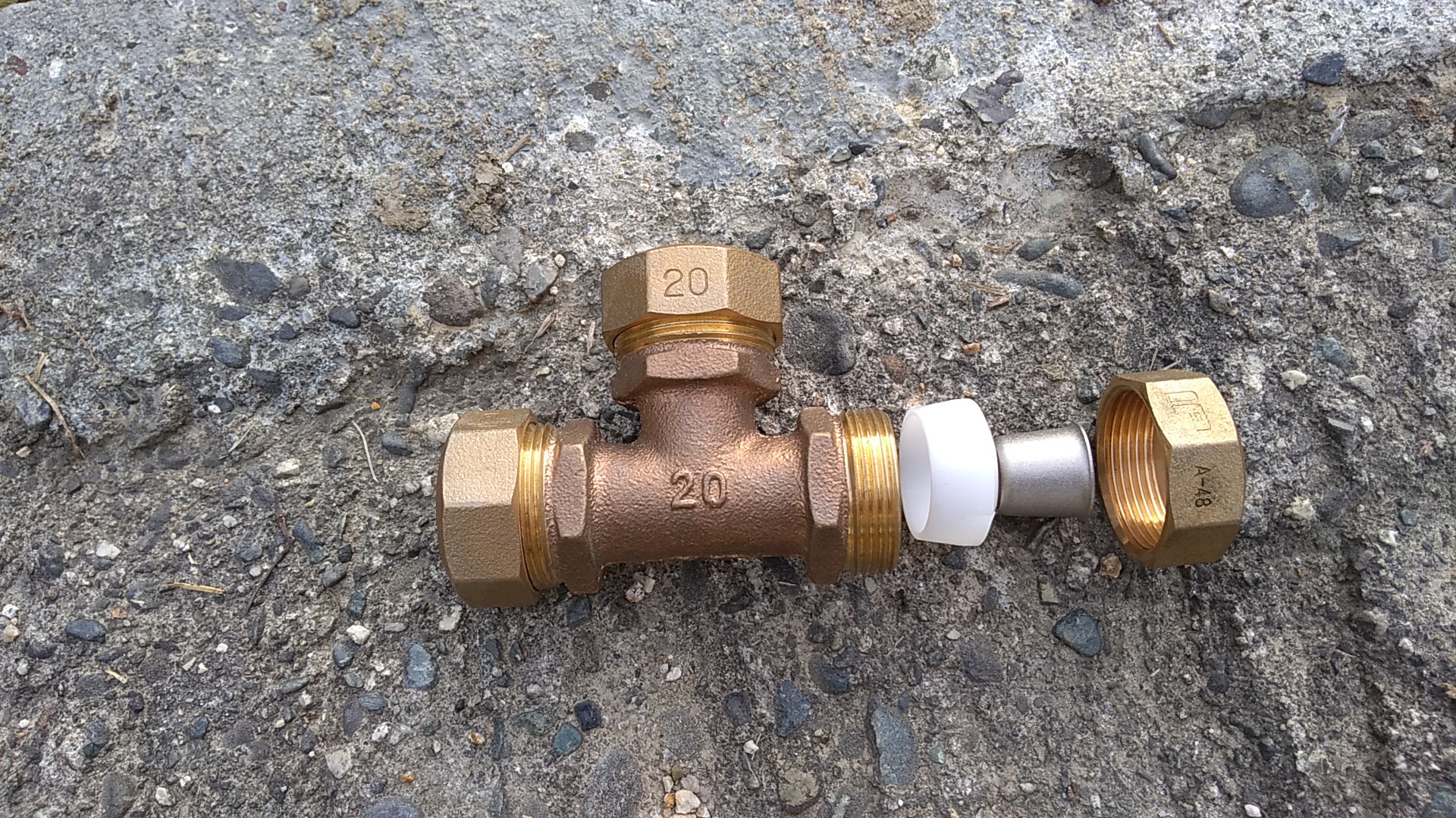 ここで登場するのが、砲金製ポリエチレンパイプ継手20mmのチーズです。このチーズは2,000円以上します。