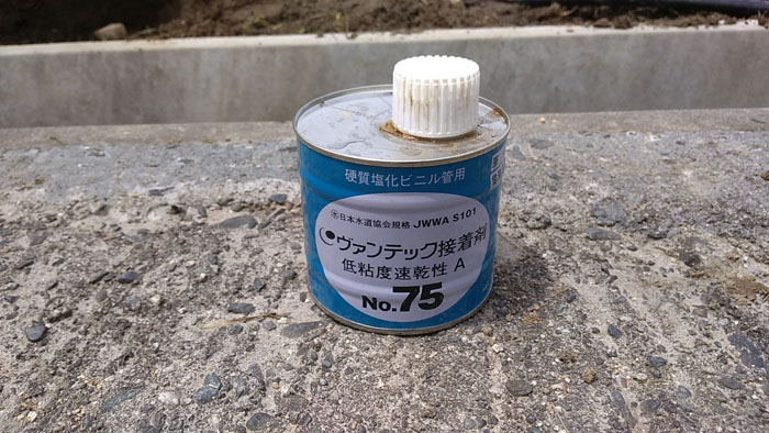 低粘度速乾性の接着剤の登場です。塩ビパイプを接着します。