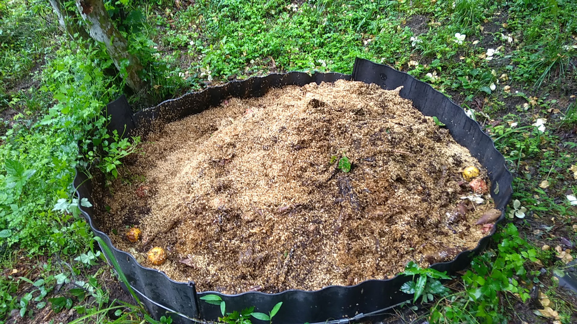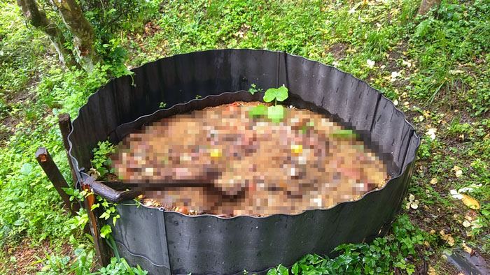 現在の枠を取り除き、中身の籾殻と生ゴミを中央へ寄せます。