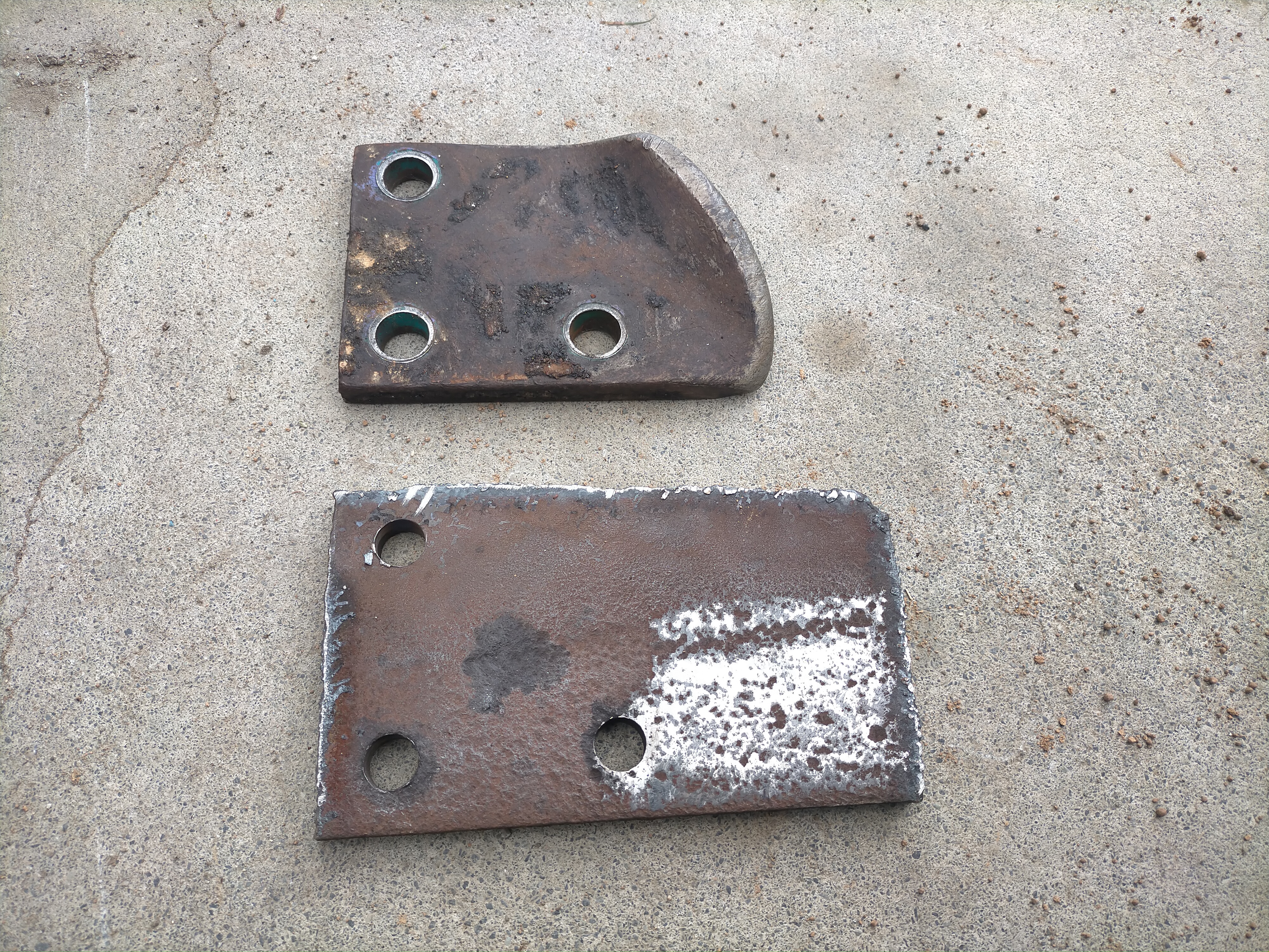 サイドカッターは曲がっているし、サイドカッター自体に手を加えるのはなんだか気が引けます。そこで、同じような厚い鉄板を別に用意しました。近所の鉄工所へ行き、材料の鉄板の切り出しと、穴あけを頼ました。困ったとき、あると便利は、近所の鉄工所。