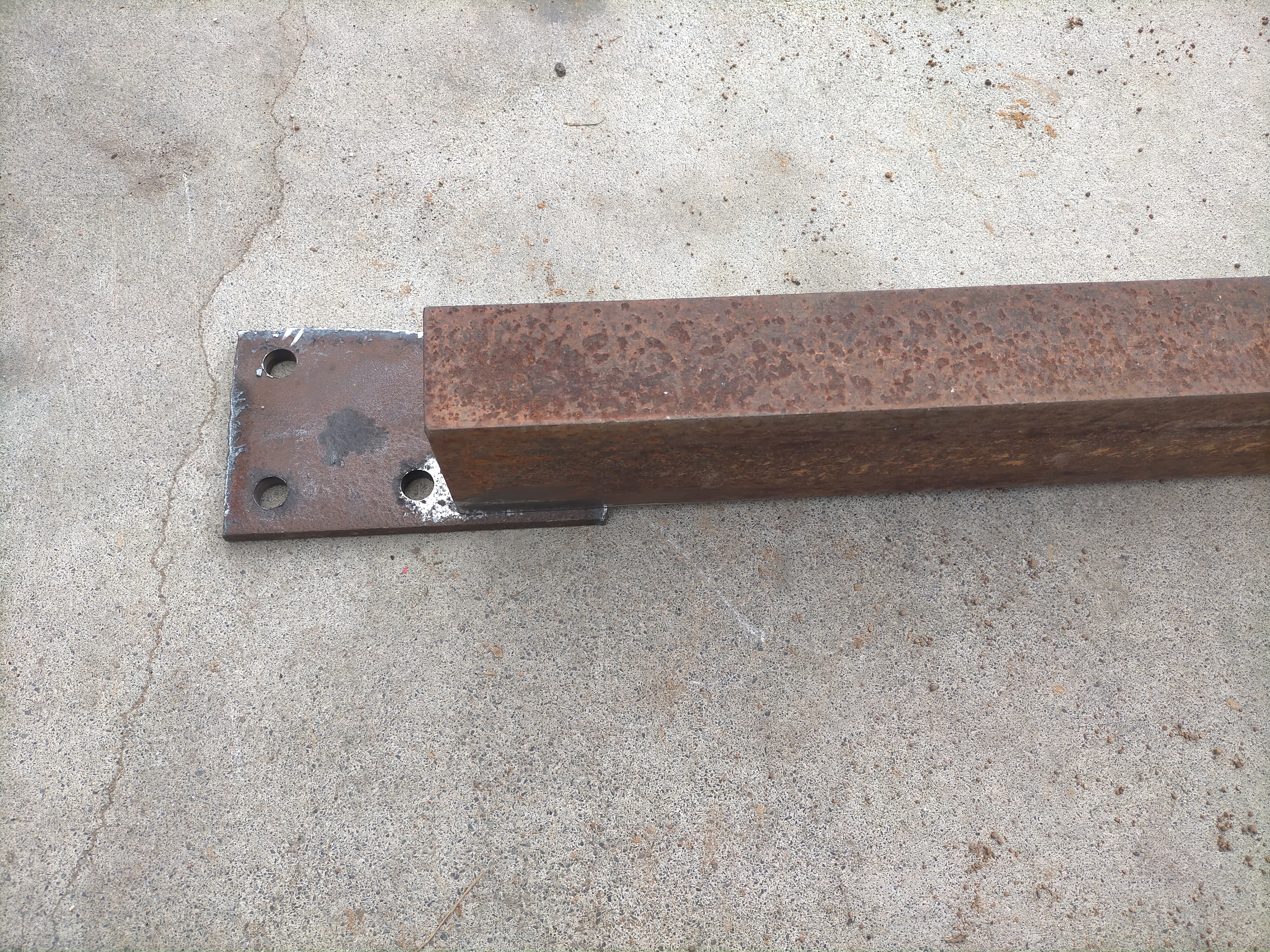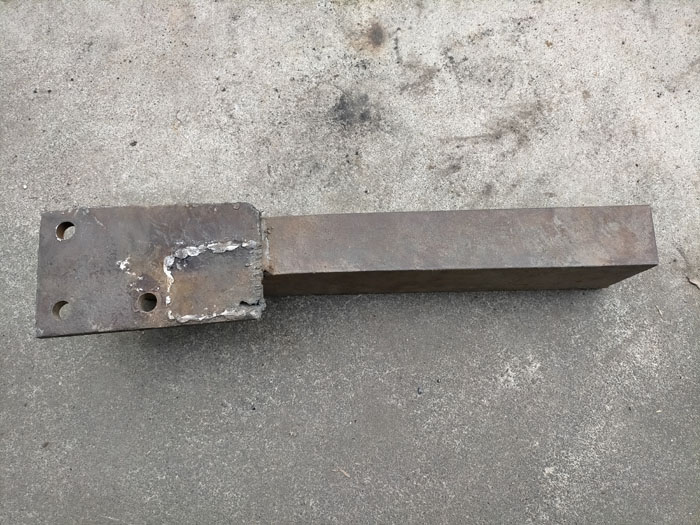 曲げてしまった部品を、鉄工所へ再び持ち込み、ハンマーで叩いて矯正し、溶接をガス切断機で取り外してもらいました。そして取り付け方と取り付け位置を変更しました。チャンネルも少し短くしました。