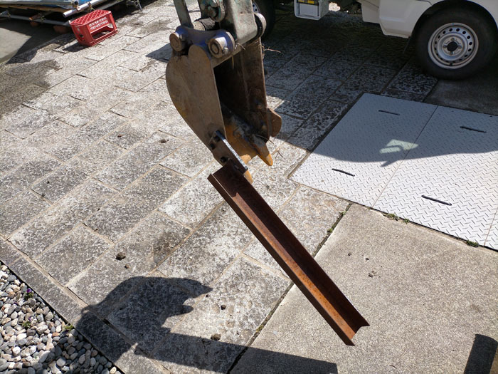 当初は快調に掘れていました。しかし、グッと先端に力を込めたとたん、グニャリと12mmあった厚い鉄板を曲げてしまいました。テコの力ってすごいですね。