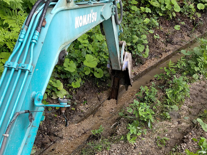 2021年05月04日、比較的狭い側溝(U字溝)の清掃をする必要が出てきたので、ユンボのバケットを側溝清掃仕様に改造開始しました。